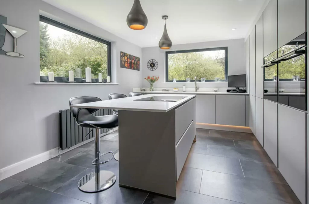 Creating space for storage is crucial if you are working with a smaller space. Our German-trained design team will come to your house for a free home measure to identify every nook and cranny within your home to make sure you’re getting as much storage space as possible. They will not just measure your kitchen, but the entire of your floor plan to make your home function as best it can, regardless of size. They will consider a range of solutions from cutlery drawers with inbuilt knife blocks and spice jar compartments to swivel pull out units for cupboards and even hidden compartments in your worktops. All our cabinetry, worktops and storage solutions are designed and shipped from the world’s biggest German kitchen manufacturer. They are experts in providing solutions to suit every single kitchen. Our designers are trained to know every single solution and integrating them into your home.